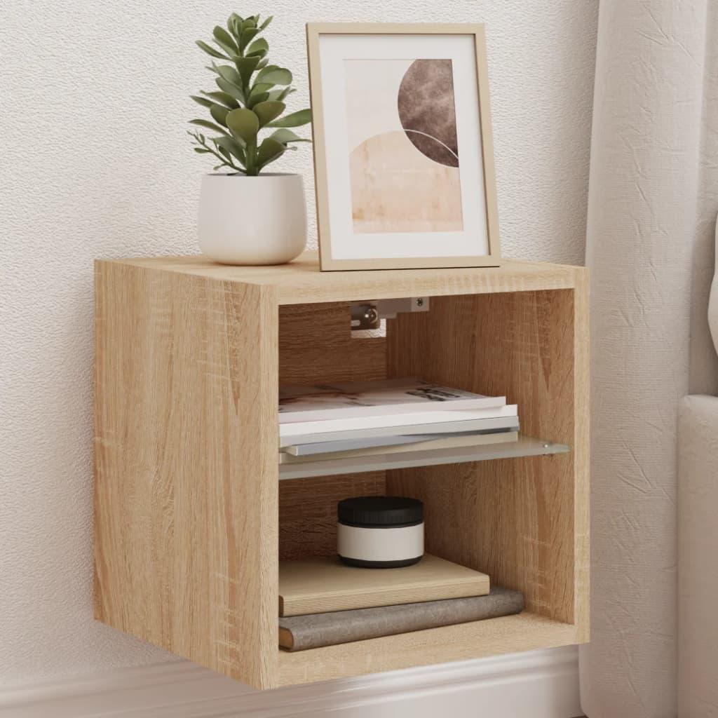 Væghængte tv-borde 2 stk. med LED-lys 30x28,5x30 cm sonoma-eg