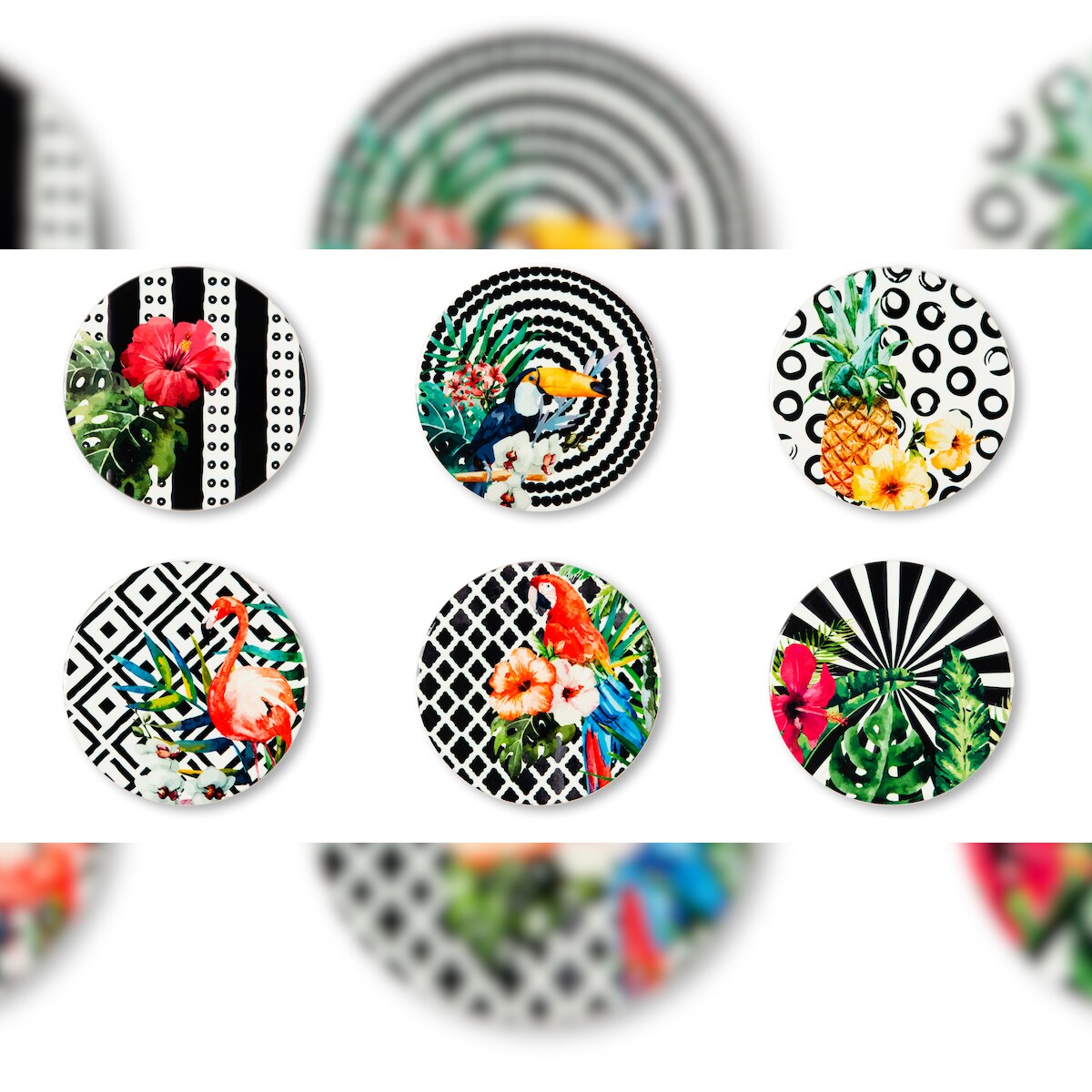 Excelsa Set mit 6 Untersetzern Tropical Chic Keramik 10,5x1x10,5 cm Bunt