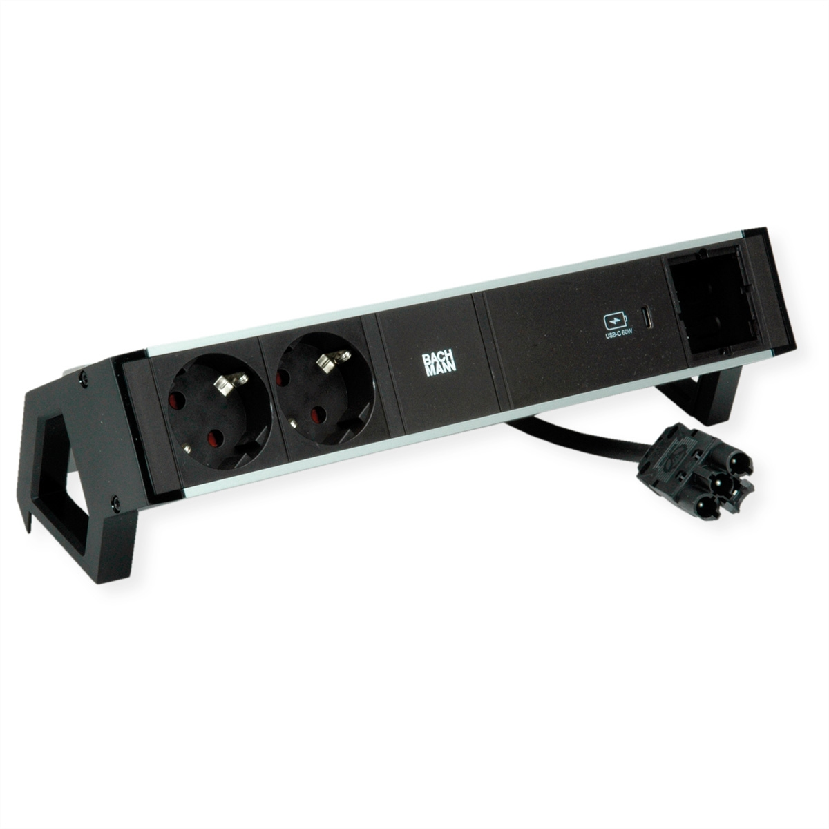 BACHMANN DESK2 ALU BLACK 2xSchutzkt.USBC, USB Charger 60W 1xABD 0,2m GST18