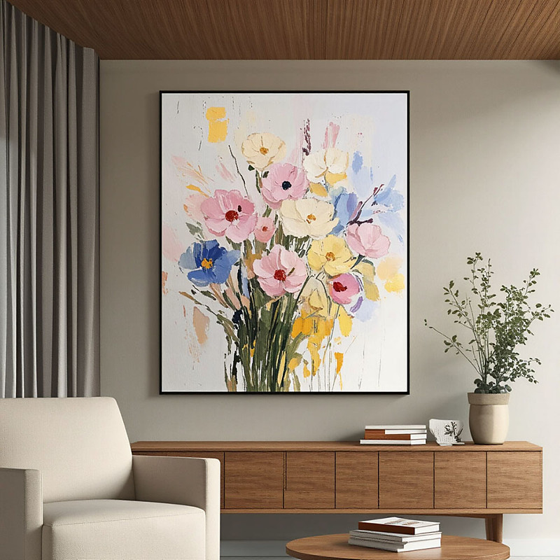 hand painted Abstract Colorful Textured Flower Oil Painting on Canvas Large Wall Art Original Minimalist Floral Painting Custom Living Room Wall Decor