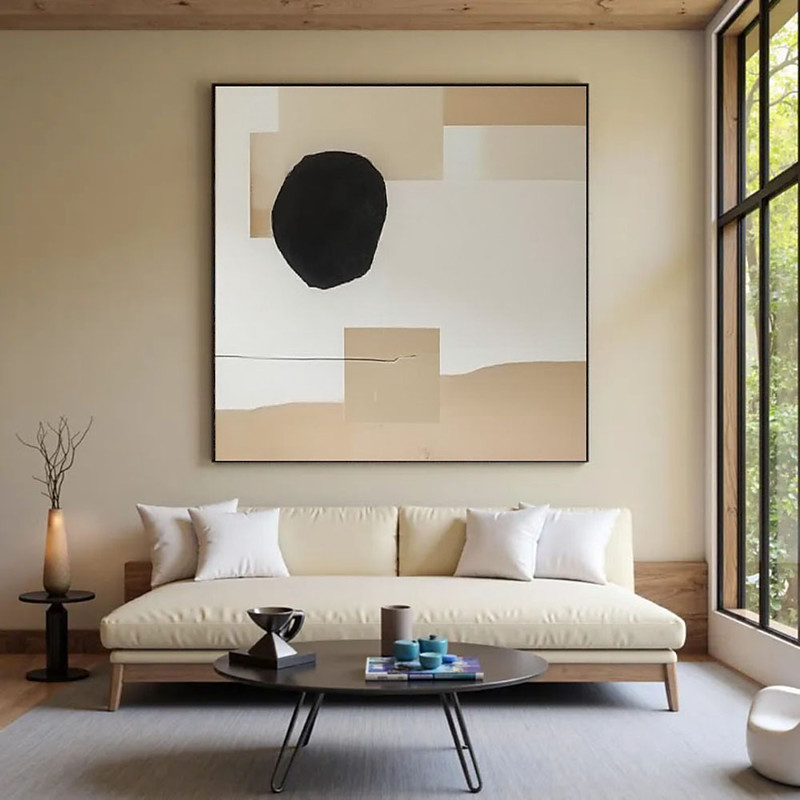 Handmade Neutral Abstract Wall Art Canvas Black Beige Modern Geometric Painting Canvas Poster Minimalist Contemporary Home Decor