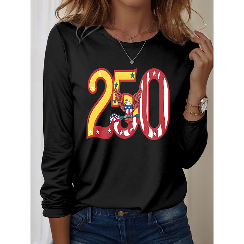 American 250th Women's Independence Day T Shirt Graphic USA Flag Fashion Stylish Classic Long Sleeve Crew Neck Round Neck Regular Tops Daily Weekend Print Blue Black White Red Summer Spring Fall