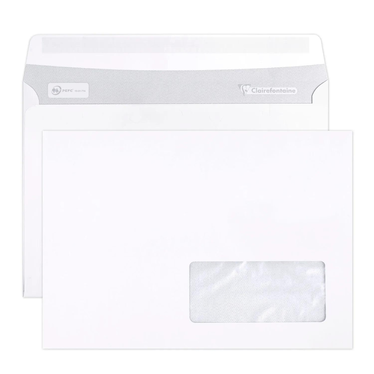 Clairefontaine 500x Umschl Adhéclair 162x229 Fen45x100- Weiß 10242C
