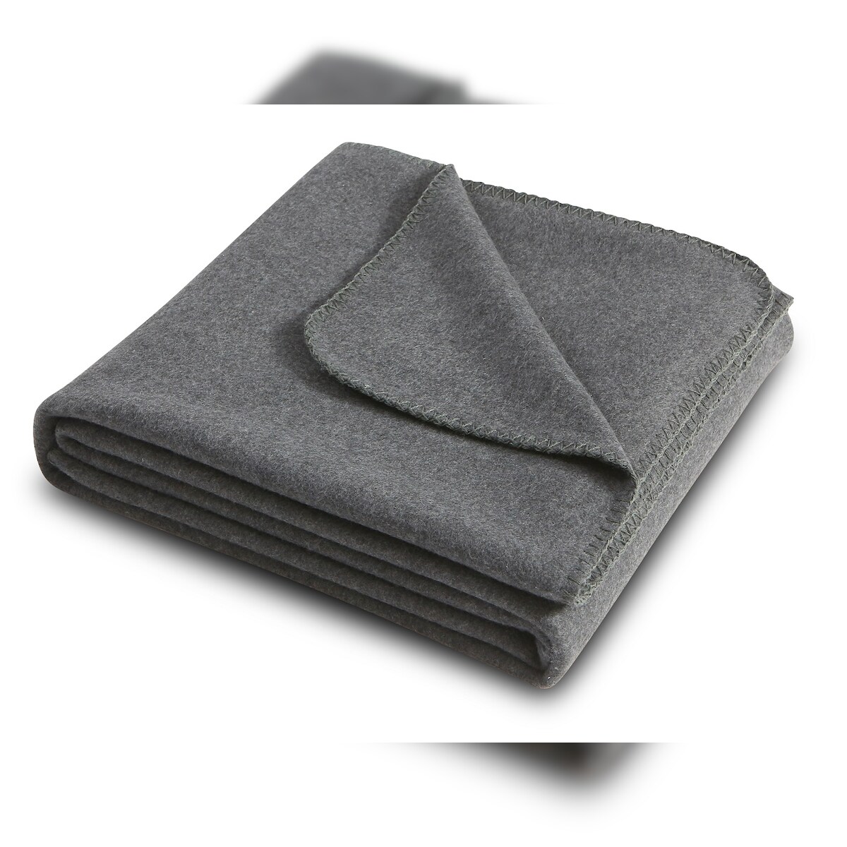 wometo PREMIUM Fleecedecke melange OEKO-TEX 140x190 ca. 700g extra dick - dunkelgrau melange (Bi-Color) mit Anti-Pilling und Qualitäts-Kettelrand