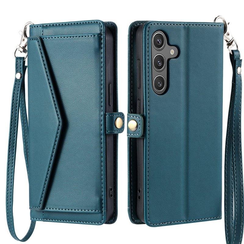Samsung Galaxy A57 Plånboksfodral Konstläder Med Handrem - Grön