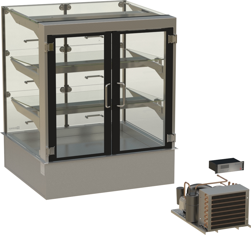 HAGOLA Showcase "Bergen" eckig, SBE, für 2xGN1/1, 3 Auslagen 20mm Tiefe, 760x710/200x710mm (BxHxT) steckerfertig mit Schnellkupplung