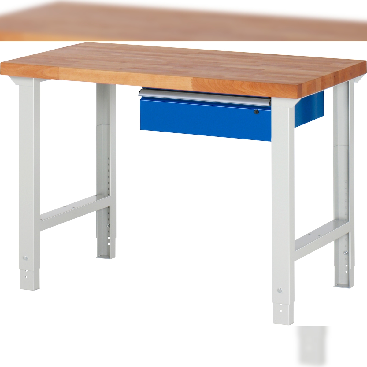 PROREGAL Werkbank Serie 7000 - Modell 7001 | HxBxT 79-114x125x70cm | 1x Schublade | Schubladenmaße 1x150mm | Lichtgrau | Arbeitstisch Werktisch