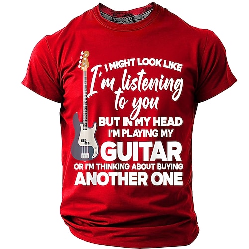 Herren-T-Shirt mit Bass-Grafik: „Ich höre zu, aber in Gedanken spiele ich Gitarre oder kaufe mir eine neue." – Lustiges, sarkastisches T-Shirt mit Bass-Motiv, normale Passform, Geschenk für