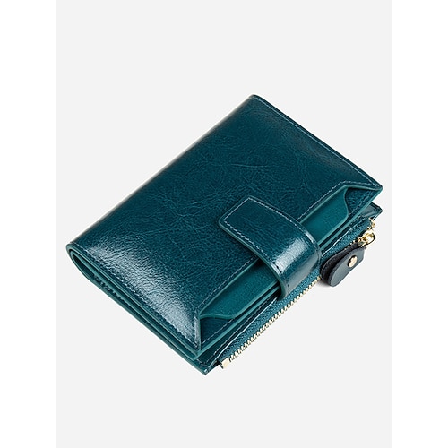 Portafoglio da donna in vera pelle con blocco RFID, portamonete multi-carta con cerniera di grande capacità, stile classico multicolore per l'uso quotidiano, viaggi, shopping e regali