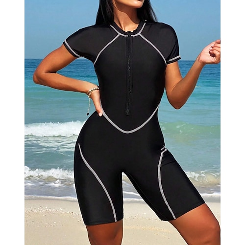 Per donna Standard Top sottomuta Rash Guard One Pieces Costume da bagno Color-blocking Con zip Protezione UV Elastico Manica Corta Costume da Bagno Body Surf Immersione Nuoto Estate
