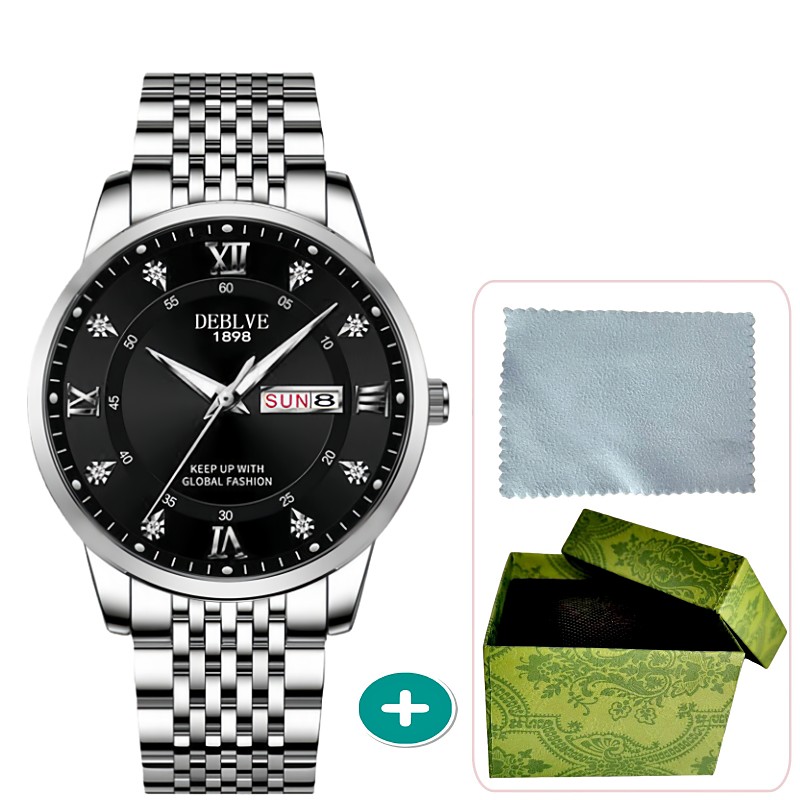 Men Quartz Watch Luxury Casual Business Luminous Calendar Date Week Waterproof Stainless Steel Watch
