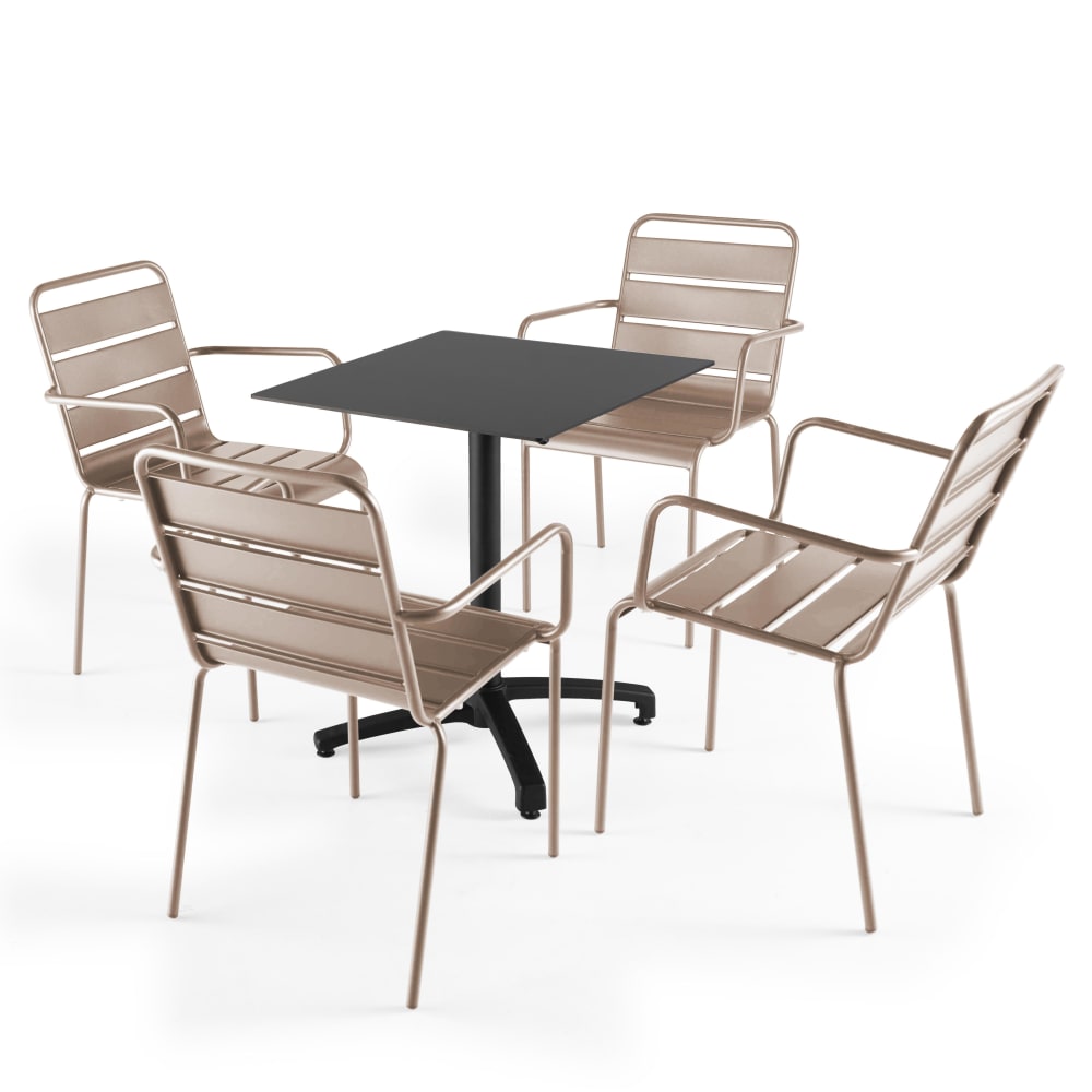 Tavolo da giardino in laminato nero e 4 sedie taupe