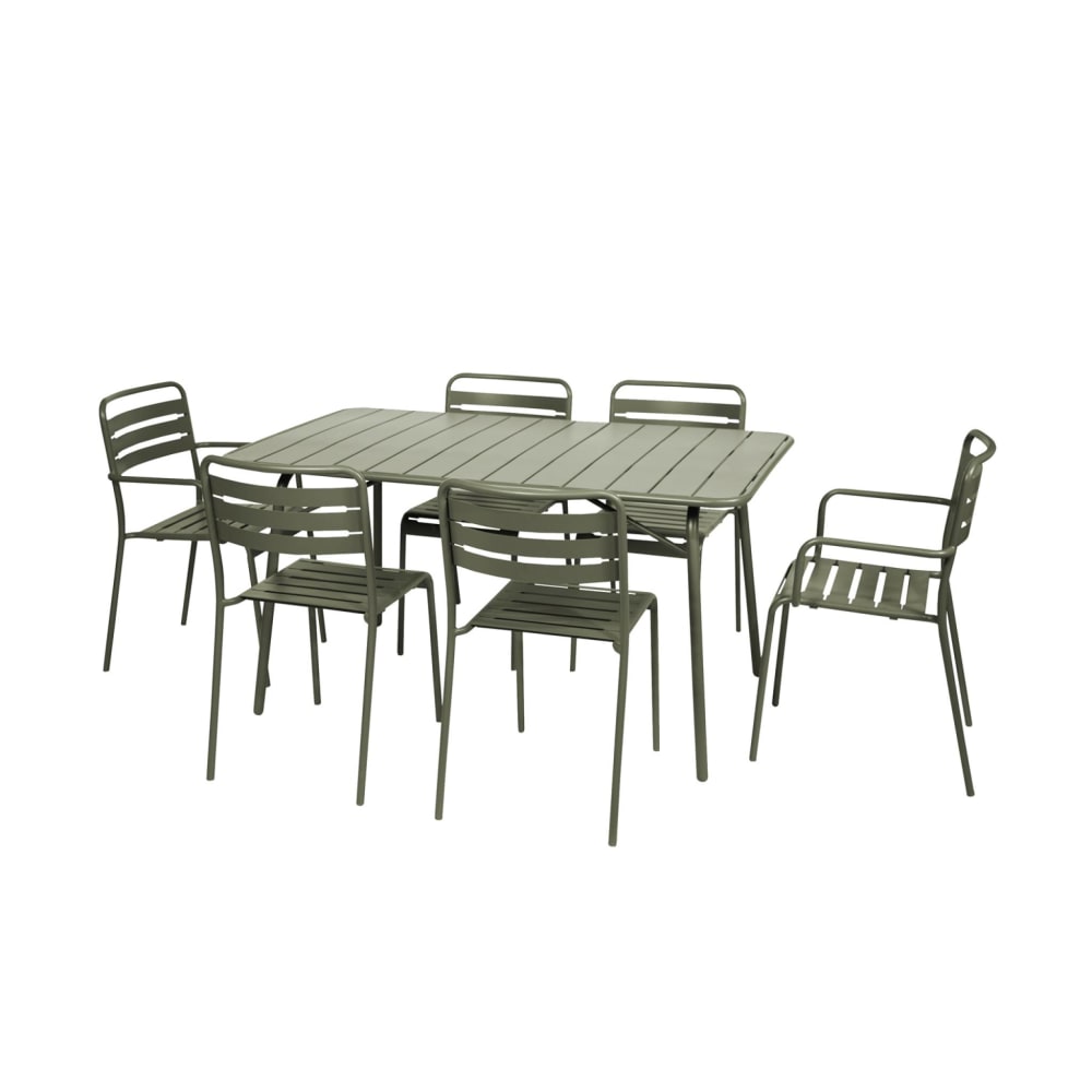 Tavolo da giardino e 6 sedie in metallo talpa