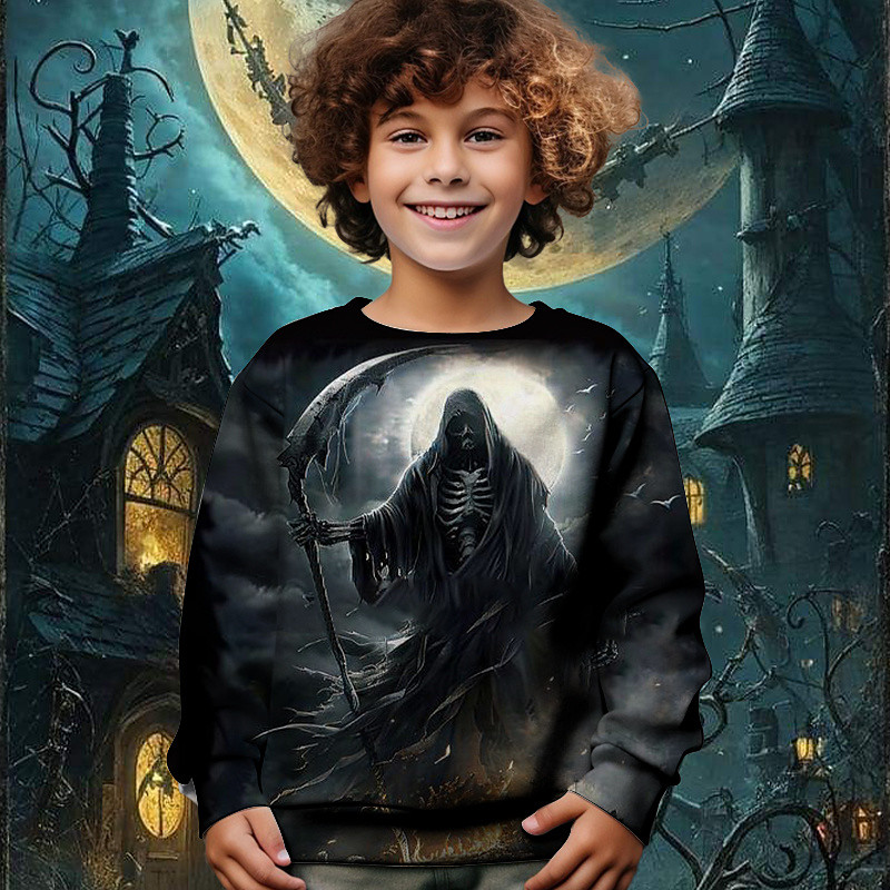 Halloween Boys' 3D Skull Dragon Sweatshirt Long Sleeve Spring Fall Fashion Basic Kids 4-12 Years Crew Neck Outdoor Casual Daily Regular Fit