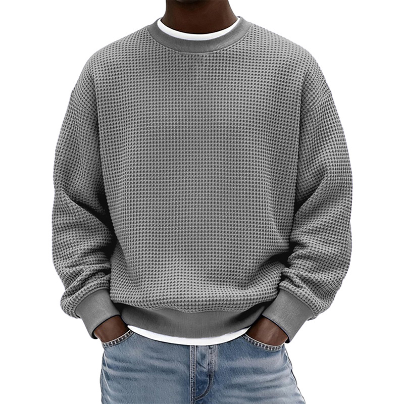 Men's Sweatshirt Waffle Sweatshirt Pullover Hoodie Sweatshirt Wine Red Black White Light Green Navy Blue Crew Neck Plain Textured Casual Daily Sports Outdoor Streetwear Cool Sportswear Spring
