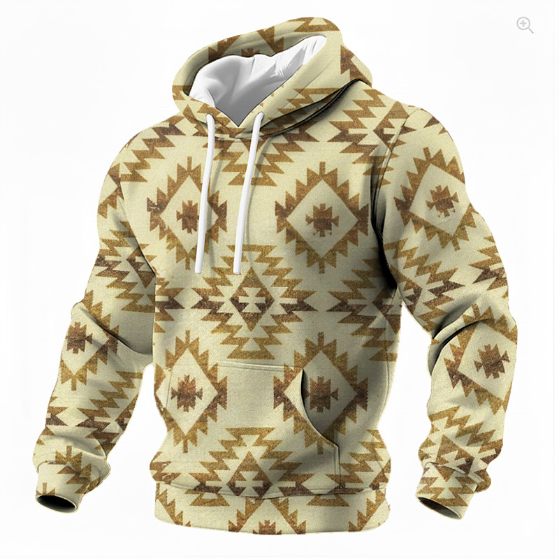 Men's Aztec Hoodie Sweatshirt Ethnic Vintage Retro Long Sleeve Crew Neck Sports Outdoor Streetwear Brown Drawstring Fall Winter Designer S M L XL XXL XXXL