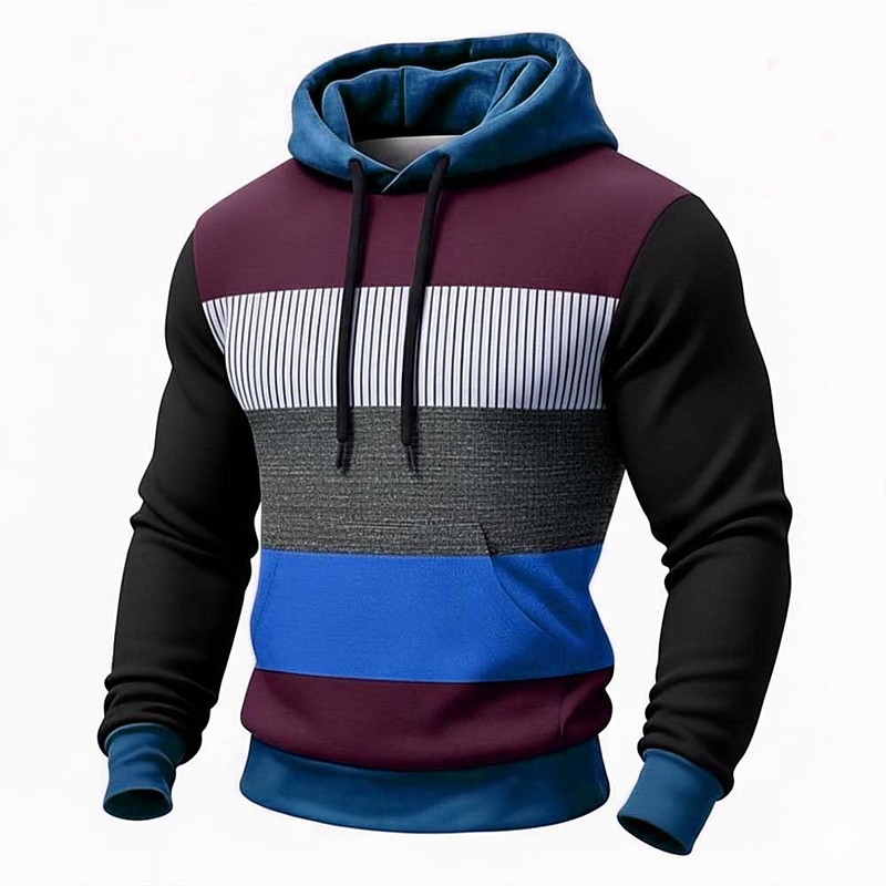 Men's Sweatshirt Pullover Hoodie Sweatshirt Pullover Wine Red Army Green Navy Blue Purple Crew Neck Plain Striped Patchwork Color Block Casual Daily Sports Outdoor Streetwear Cool Sportswear Spring