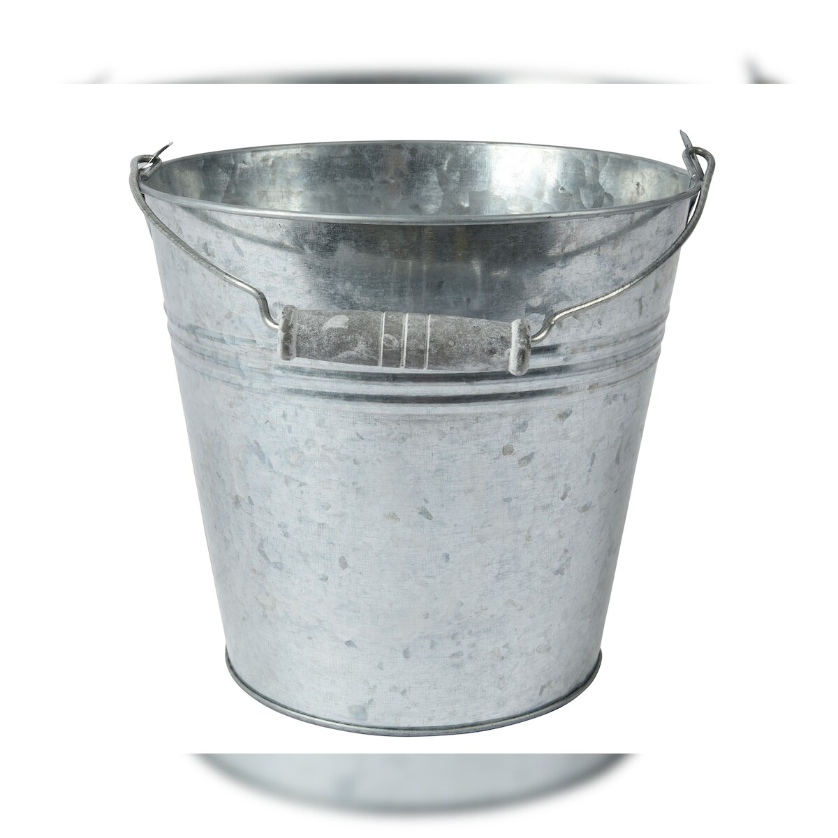 Decoris 1 Blumentopf Eimer Zink 18x17cm innen & außen Holzgriff Übertopf Metall Blumenübertopf Deko Garten Pflanzentopf Gartendeko Balkondeko Terrassendeko