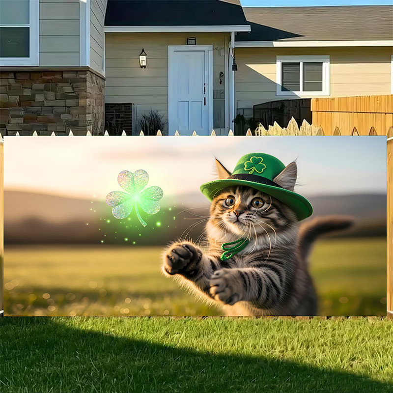 St. Patrick's Day Tapestry Garage Door Cover Large Hanging Backdrop Cat Elf Cute 3D Party Outdoor Holiday Shooting Backgrounds Yard Home Decor