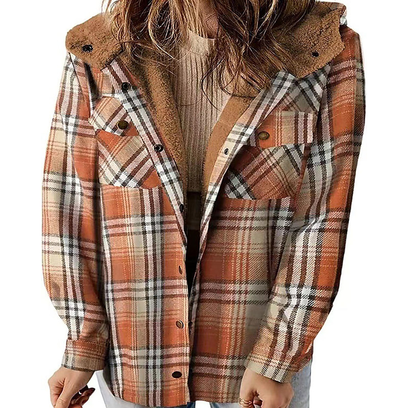 Women's Winter Coat Shirt Jacket Warm Comfortable Patchwork Buttons Fashion Casual Plaid Vacation Street Casual Daily Wear Regular Hooded Regular Fit Long Sleeve Outerwear Blue Black Yellow Fall