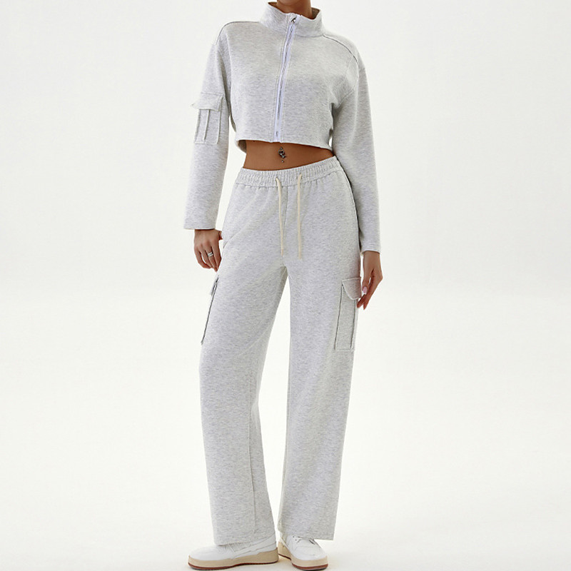 Women's Lounge Sweatsuit Sport Cargo Suit Drawstring Pocket Solid Color Clothing Suit Fall Black Grey Outdoor Running Yoga High Waist Windproof Lightweight Warm Long Sleeve Sport Activewear Loose Fit