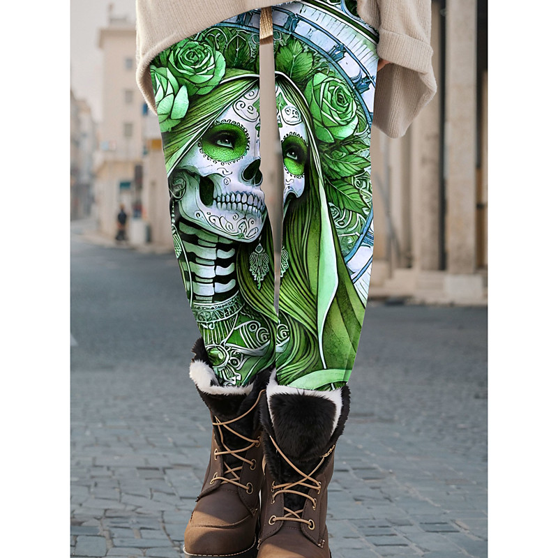Women's Leggings Vacation Vintage Fashion Full Length High Waist Graphic Skull Abstract Printing Soft Breathable Stretchy Formal Outdoor Vacation Blue Purple Green Gray Spring Fall Winter Loose Fit