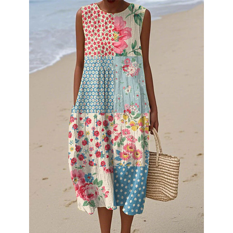 Women's Midi Dress Sundress Shift Dress A Line Dress Vacation Casual Boho Beach Party Going out Loose Fit Floral Graphic Sleeveless Crewneck Blue Gray Pink Beige Summer Spring