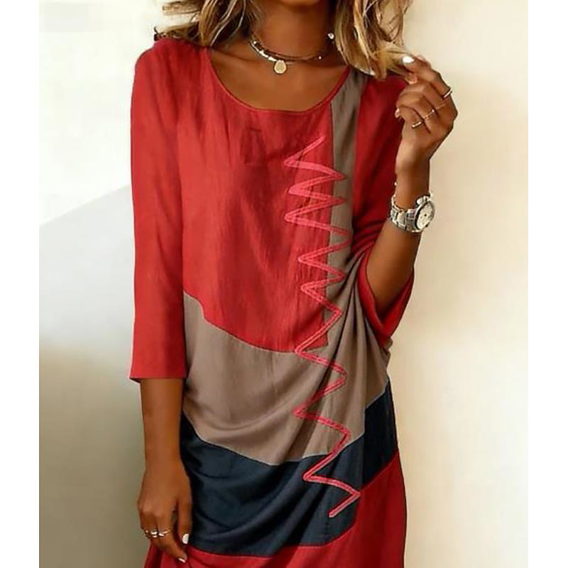 Women's Long Dress Maxi Dress Hoodie Dress Casual Dress T Shirt Dress Tee Dress Modern Daily Going out Weekend Loose Fit Color Block Long Sleeve Crew Neck White Red Khaki Dark Gray Spring Fall