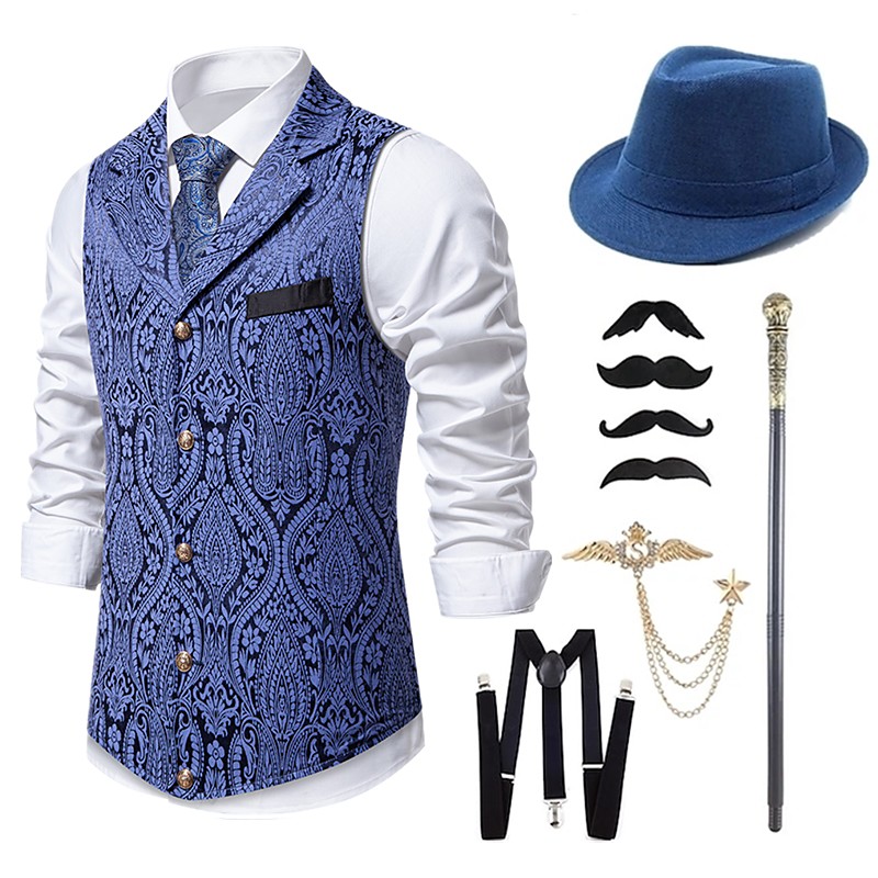 Retro Vintage Roaring 20s 1920s Outfits Waistcoat Accesories Set Gentleman Gangster Fancy Dress Men's Halloween Carnival New Year Carnival Party / Evening Masquerade Adults' Cravat Vest Hat All