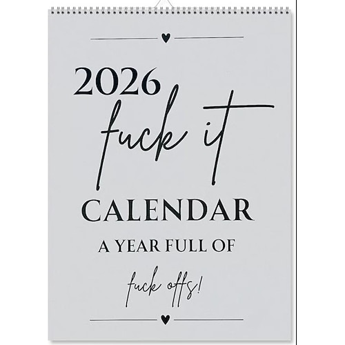 fck it 2026 Spiralgebundener Wandkalender, lustige fette Schriftart, handgezeichneter Monatsplaner im Graffiti-Stil, hängender Kalender, Home Office, dekorativer, humorvoller Terminplaner