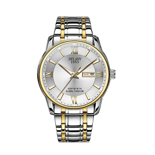 Die neue Herrenuhr mit römischem Zifferblatt und modischem Legierungsarmband von Deblve verfügt über einen leuchtenden Kalender und eine Tagesanzeige. Sie ist die ideale Wahl für ein einfaches und
