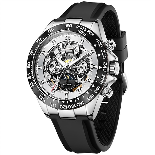 Die neue Olevs-Herren-Business-Uhr aus Silikon mit leuchtendem Kalender und Mondphasenanzeige ist eine multifunktionale vollautomatische mechanische Uhr und eine modische, lässige, wasserdichte