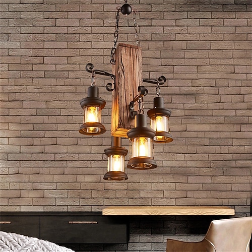 4 luci 45 cm Lampada a sospensione Legno Industriale Rustico 110-120V 220-240V