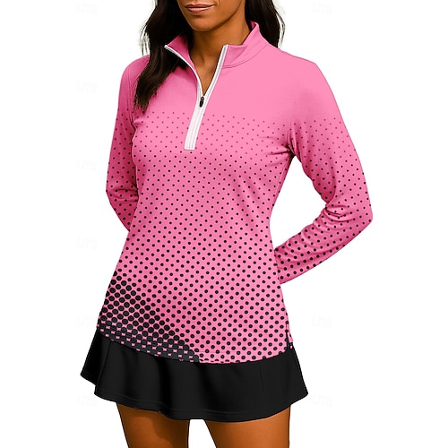 Per donna Sfumatura Puois Maglietta Maglietta sportiva Polo da golf Maglia da tennis Manica Lunga Cerniera Floreale UPF50 Resistente ai Raggi UV Alta elasticità Traspirante Tennis Golf Pickleball