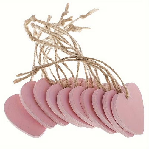 50 Mini-Herzornamente aus Holz im Vintage-Stil, handgefertigte Ornamente aus Naturholz mit Juteschnur, 4 cm (1,57 Zoll) rustikale Dekoration für Hochzeiten, Geburtstage und Partys, DIY-Bastelarbeiten