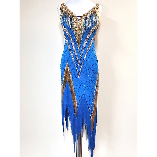vestito da ballo latino nappa con frange giunzione di colore puro prestazione di allenamento delle donne manica lunga abito quotidiano da donna in poliestere alto