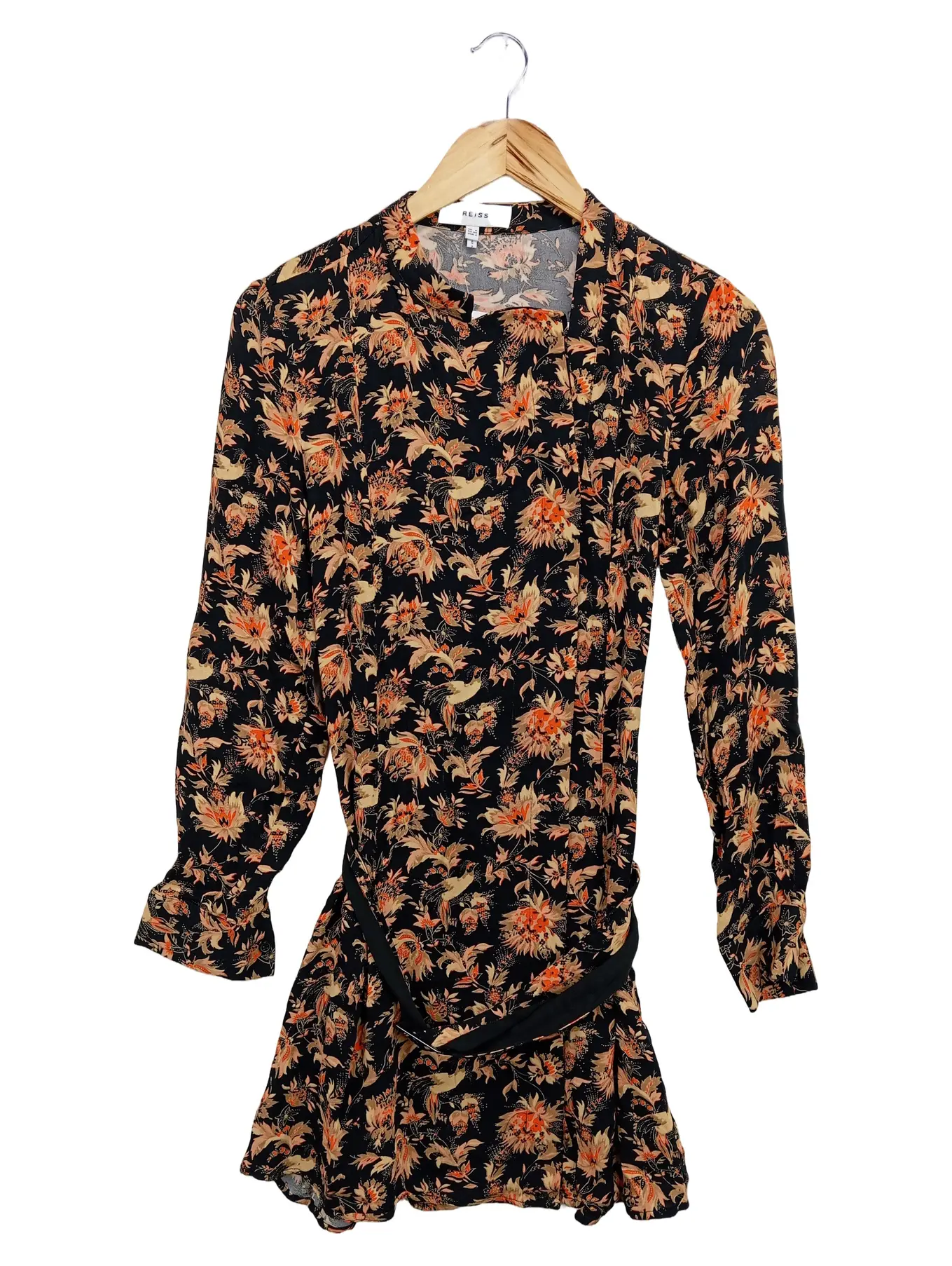 REISS Damenkleid 34 Schwarz Orange Wickelkleid
