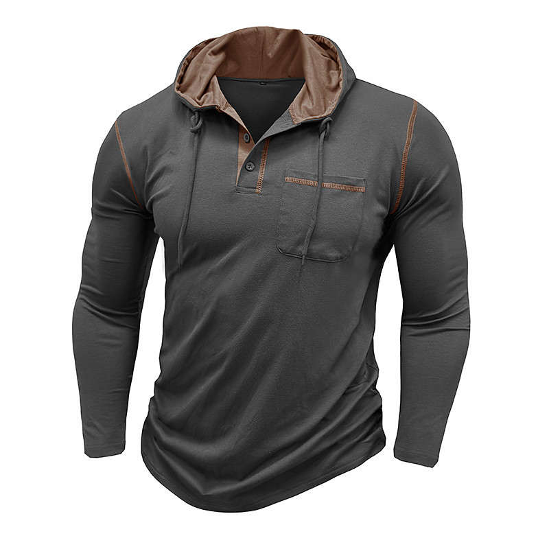 Men's T Shirt Long Sleeve Crew Neck Spring Fall Solid Color Traditional / Vintage Hooded Outdoor Activewear Light Blue Dark Brown White Top Tee for Men