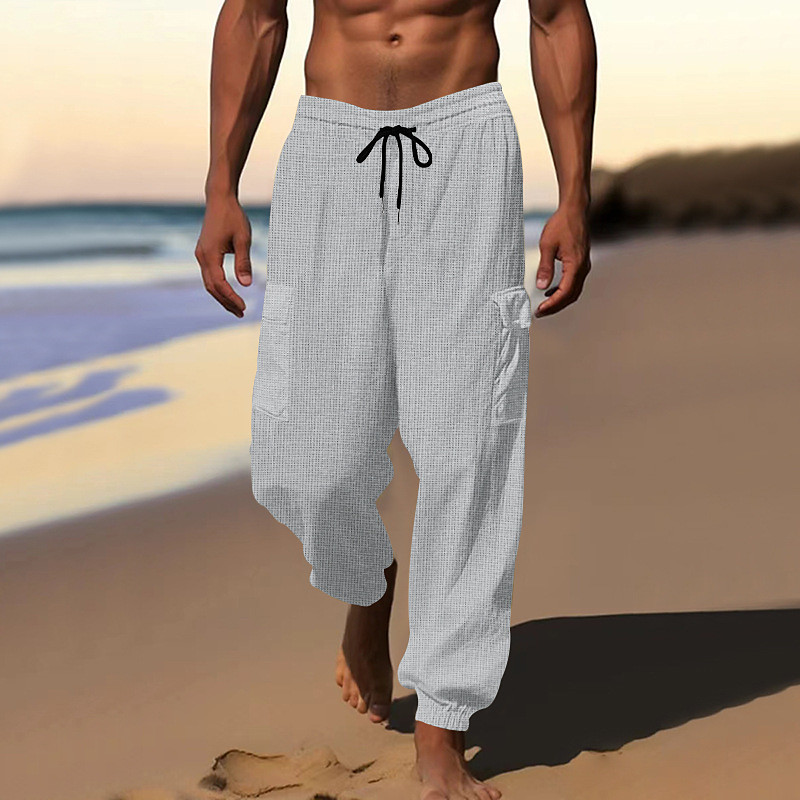 Men's Cargo Sweatpants Sweatpants Waffle Pants Drawstring Plaid Breathable Full Length Daily Casual / Sporty White 1 Black 1# Micro-elastic
