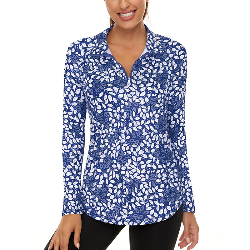 Women's Floral Golf Polo Shirt Tennis Shirt Long Sleeve Print Quarter Zip Pullover UV Protection Elastic Breathable Tennis Golf Pickleball Zip Collar Shirt Polo Pink Blue Gray Tennis Clothing