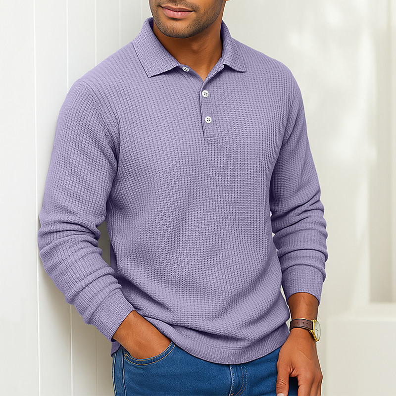 Men's Waffle Polo Shirts Textured Casual Vacation Turndown Long Sleeve Fashion Solid Color Plain Buttons Plain Fall Spring Fall Regular Fit Black Light Green Green Light Blue Purple Dark Blue