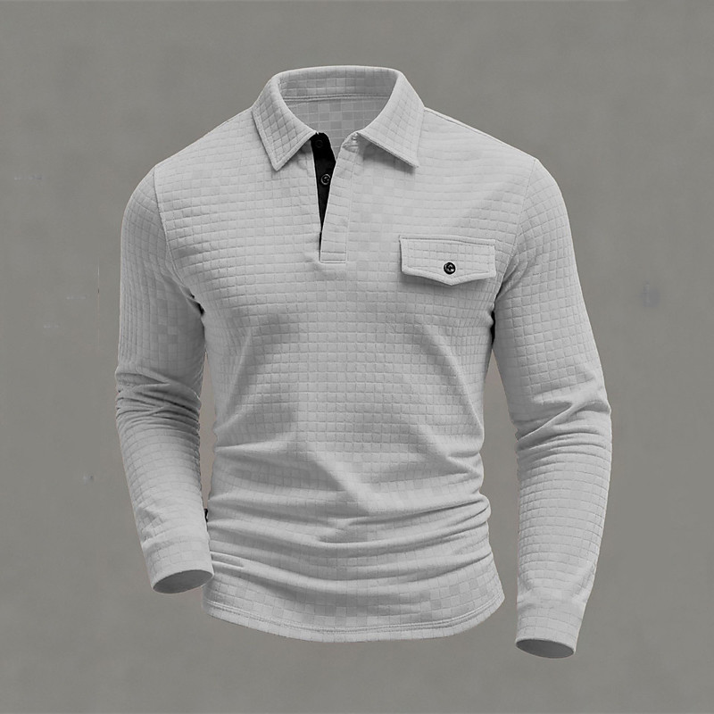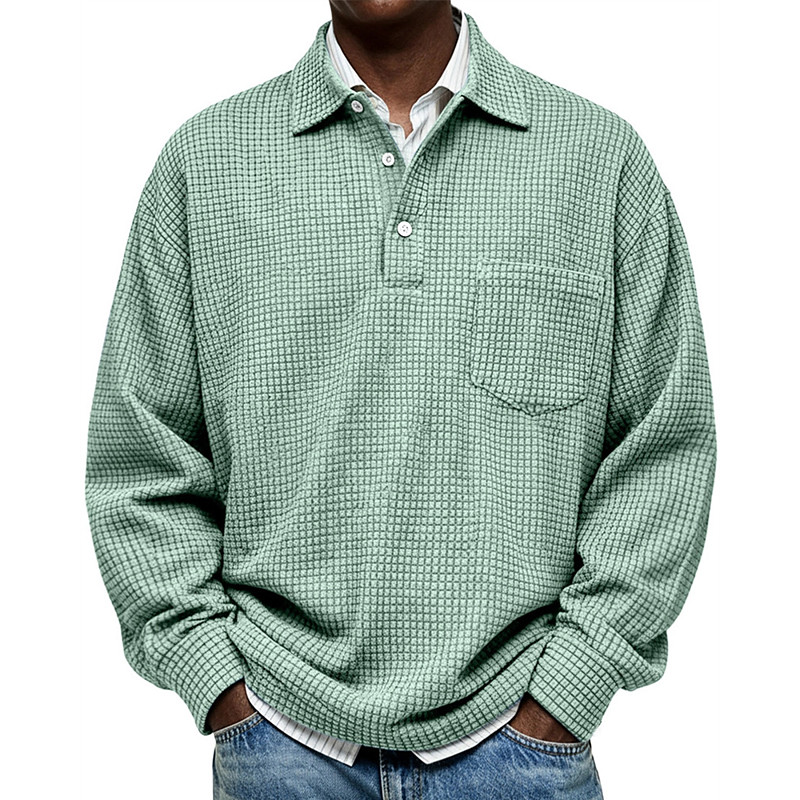 Men's Waffle Polo Shirts Polo Shirts Casual Street Lapel Long Sleeve Basic Modern Plain Pocket Buttons Spring Fall Regular Fit Blue Grey Black White Light Green Wine Waffle Polo Shirts