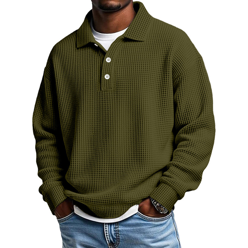 Men's Waffle Polo Shirts Textured Sports Outdoor Casual Lapel Long Sleeve Streetwear Cool Plain Classic Style Textured Fall Spring Fall Regular Fit Apricot Black Light Green Army Green Navy Blue