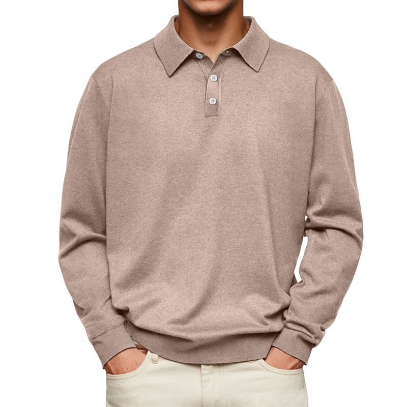 Men's Polo Casual Sports Lapel Long Sleeve Basic Modern Plain Textured Buttons Spring Fall Black Navy Blue Brown Cyan Gray Light Blue Polo