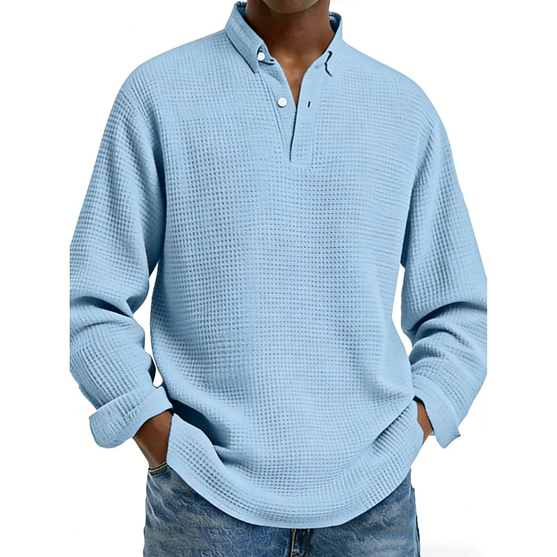 Men's Waffle Polo Shirts Polo Casual Formal Turndown Long Sleeve Fashion Solid Color Textured Buttons Plain Fall Spring Fall Fall Winter Regular Fit Light Green Light Grey Dark Blue Light Blue