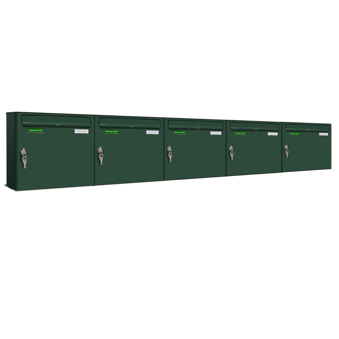 AL Briefkastensysteme 5 x Basic Wand Briefkasten in RAL Farbe 6005 Moos Grün für Post A4, wetterfest, Artikelnummer: 431P5EA5P6005