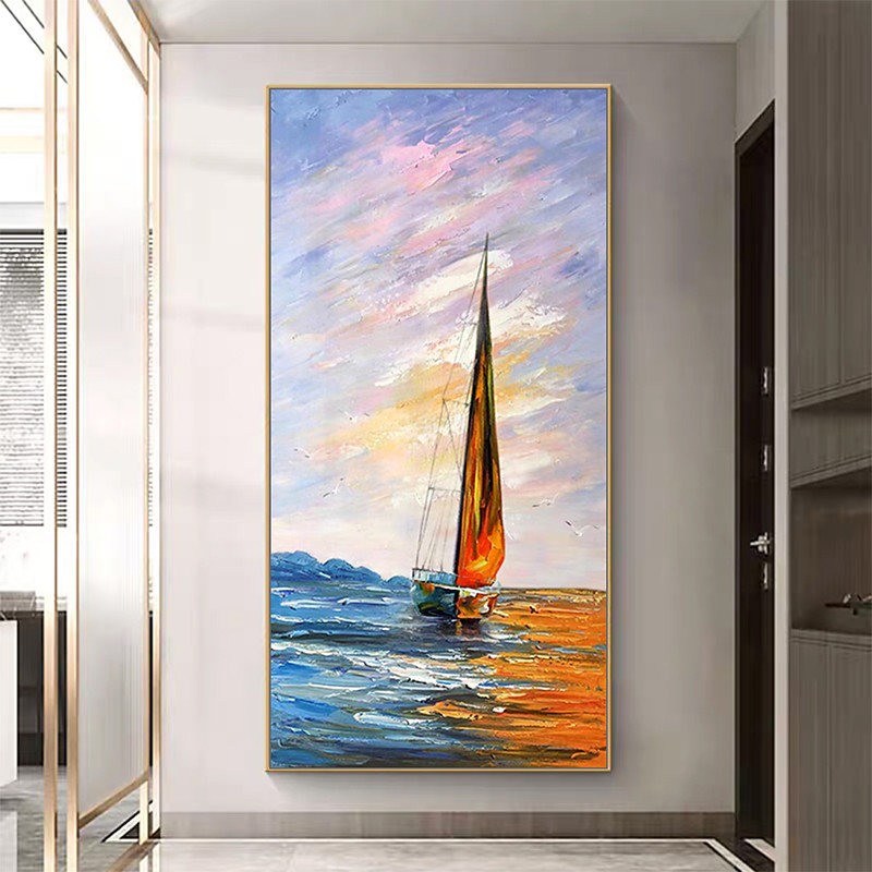 Handmade Oil Painting Canvas Wall Art Decoration Abstract Sailing Boat Landscape for Home Sofa Background Entrance Hall Decor Stretched Frame Hanging Painting/Rolled Frameless Unstretched Painting