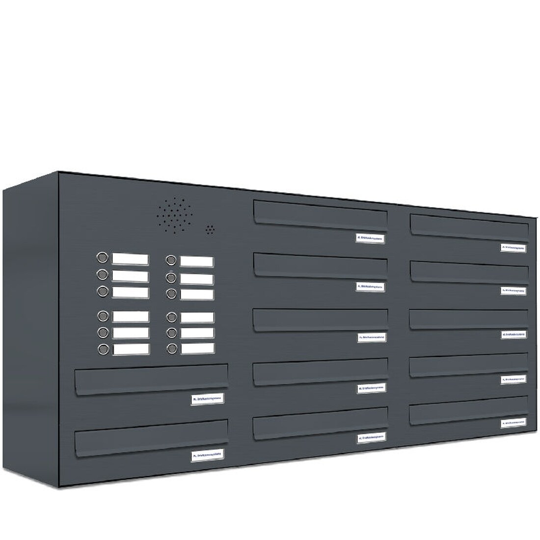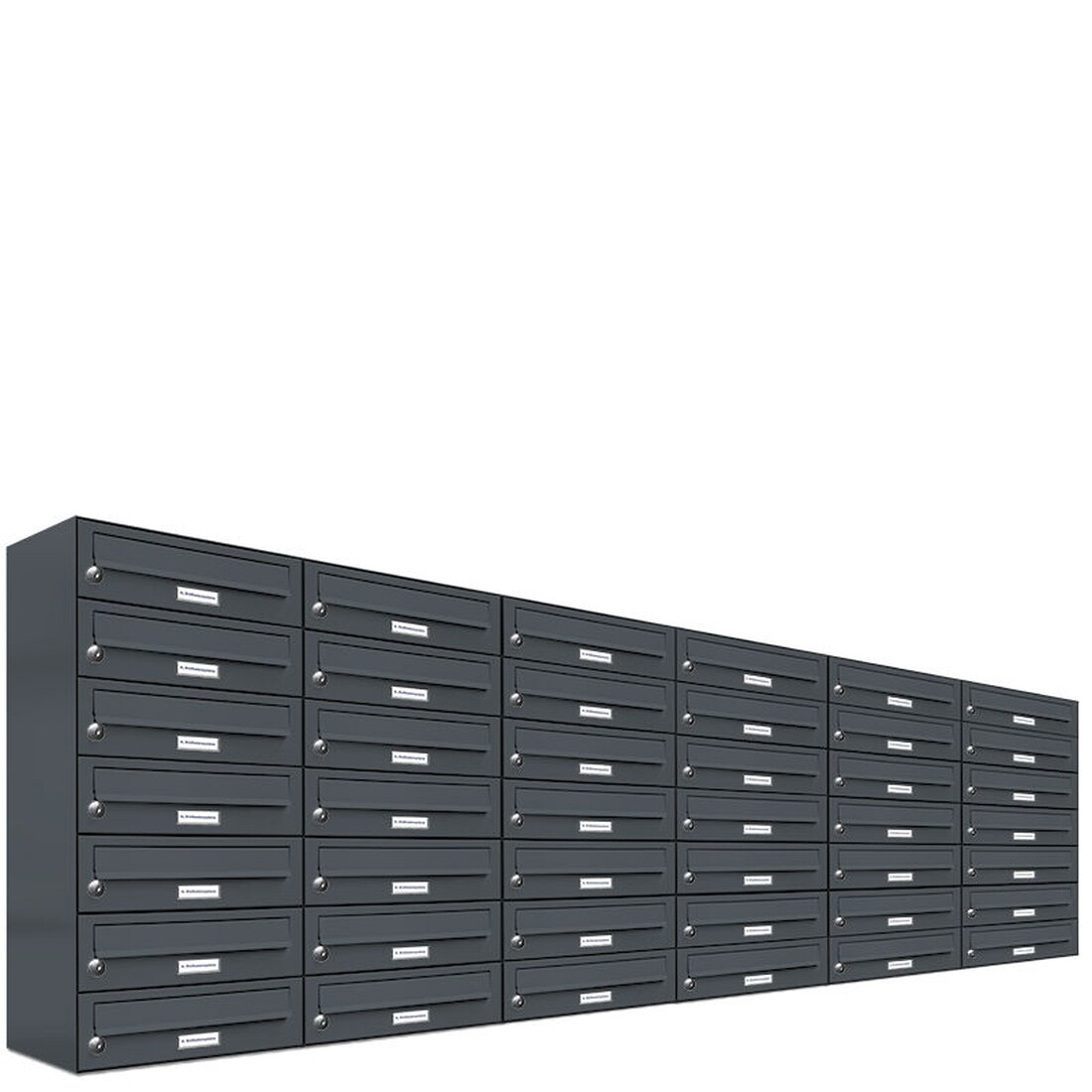 AL Briefkastensysteme 7 Fächer Premium Durchwurf Briefkasten in RAL 7016 Anthrazit Grau, Post A4, robust, wetterfest, Artikelnummer: 132P7DZ2KSP7016