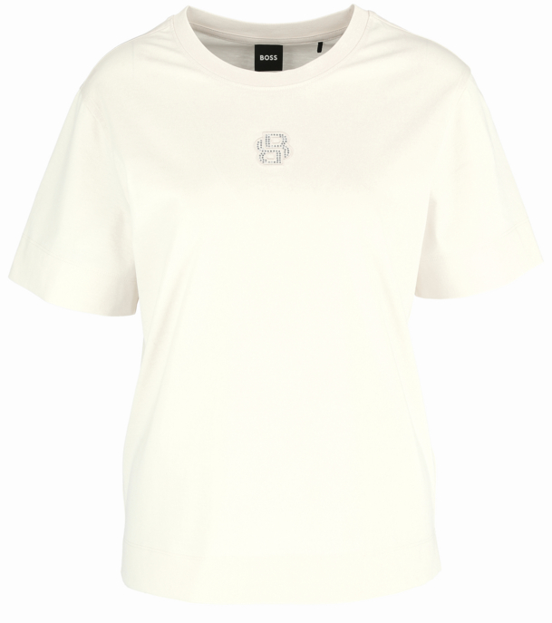 Boss Black T-Shirt "Elpha_Placed3" Gr. S in Open White | 100% Baumwolle