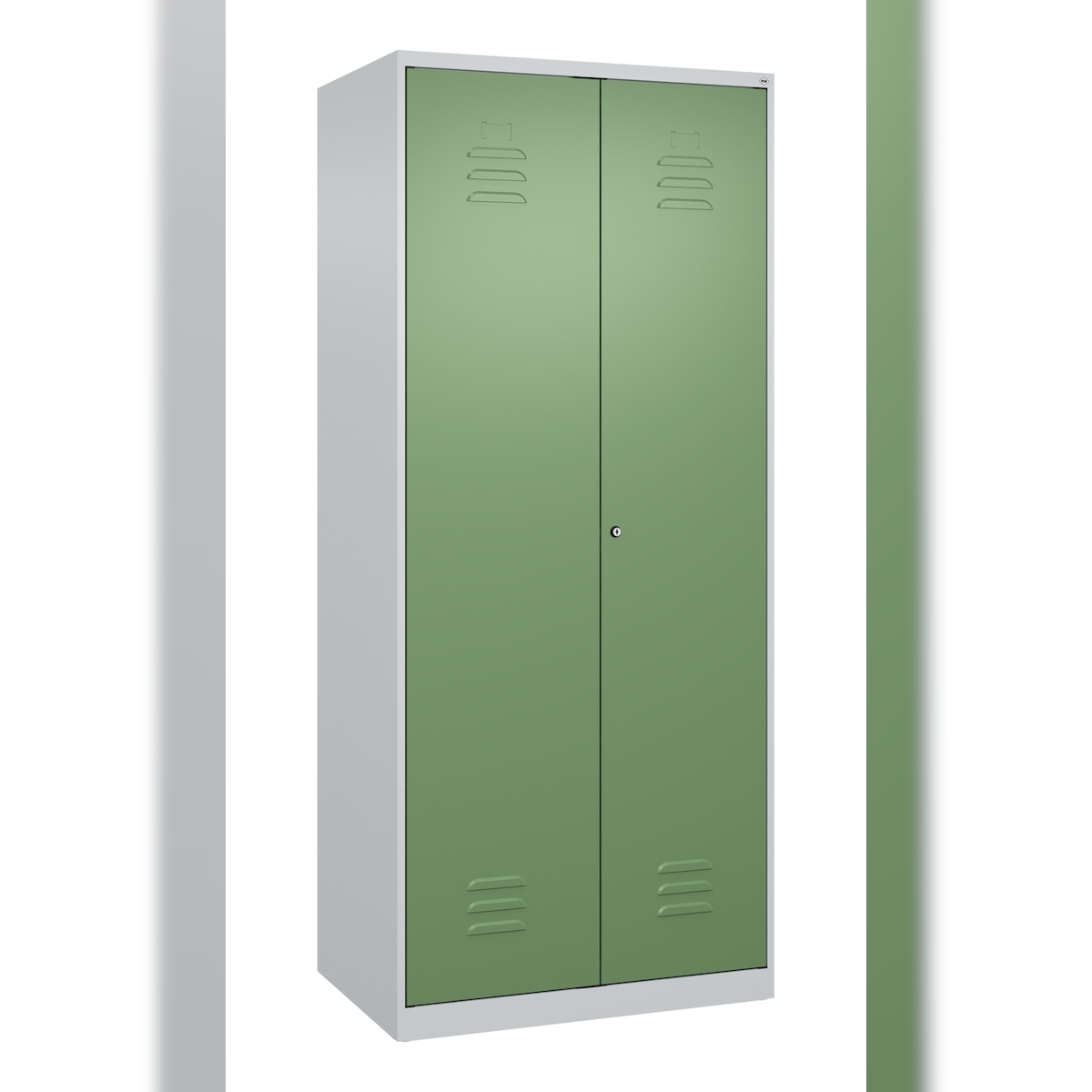 C+P Aufbewahrungs Doppel-Spind Classic PLUS, 2 Abteile je 4 Fachböden, HxBxT 185x80x50cm, Zylinderschloss, Hellgrau/Resedagrün von PROREGAL